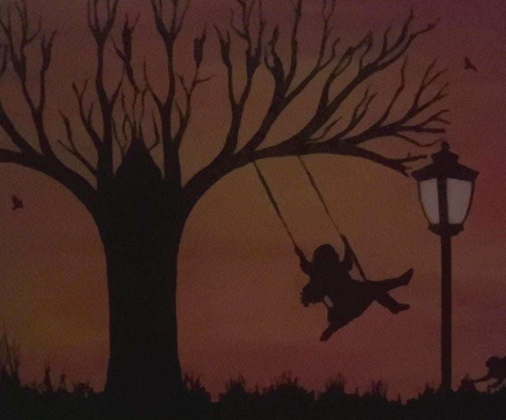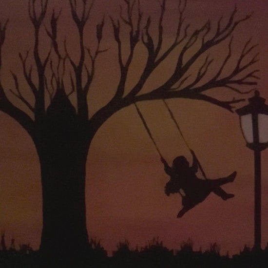 16 x 20 illuminated Dual Thermal Printed image of a girl on a swing with her dog at dusk. 3/AAA Batteries included.