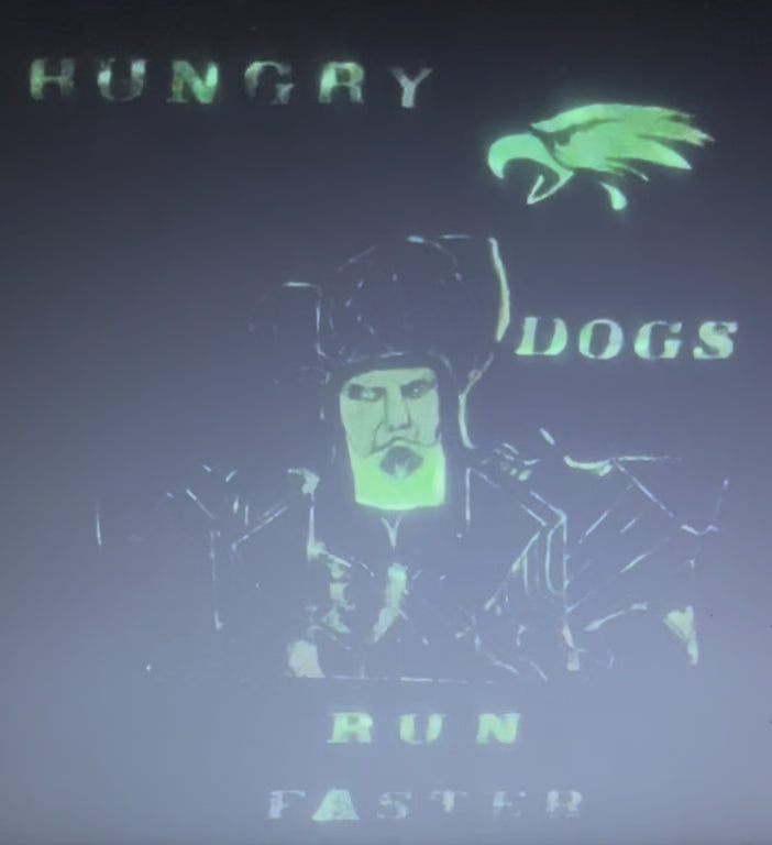 16 x 20 illuminated picture of “Mummers Kelce” with phrase “ hungry dogs run faster “