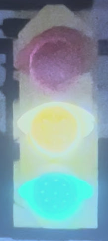 17 x 8 x 8 vertical three light traffic signal. 3 lights 2 speeds. 6/AA batteries included.